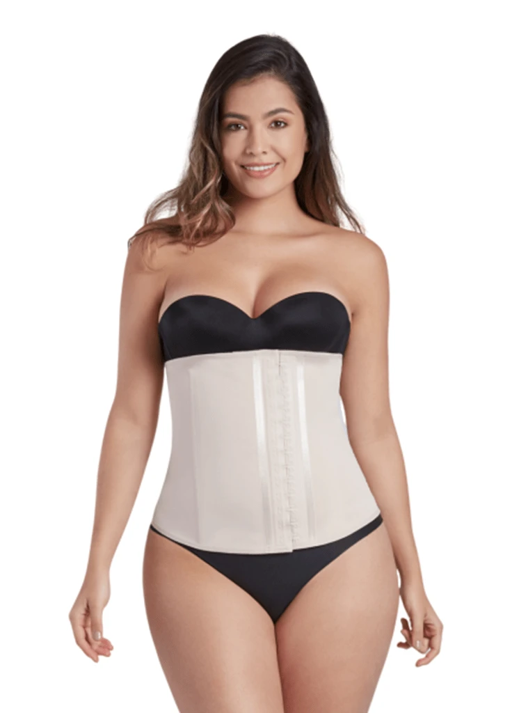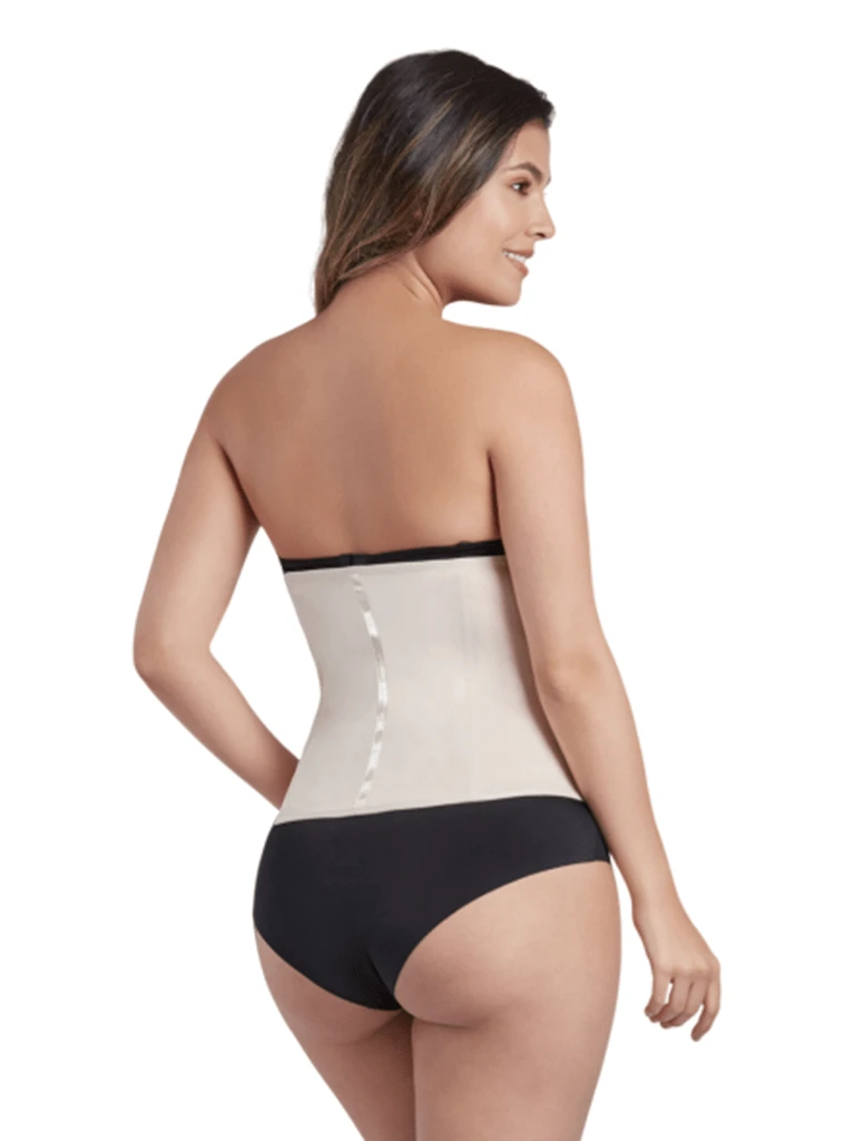 Experience the amazing transformation, with this lined latex waist cincher has 3-hooks that help control and shape your figure, in a wider range thanthe conventional cincher. The latex layer helps reduce inches, elevates body temperature and increases perspiration in the torso area; all this with the purpose of decreasing the levels of fat localized in the abdomen, waist and back.