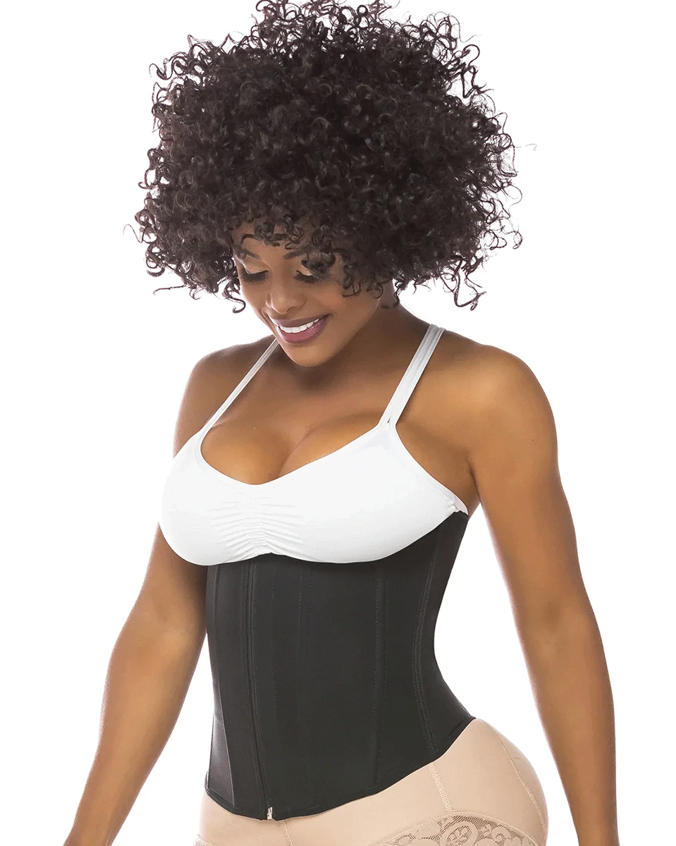 - Model the area of the torso and waist using the clasps and the flat closure, which allows it to be practically invisible under any garment.