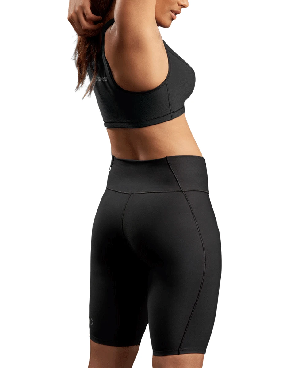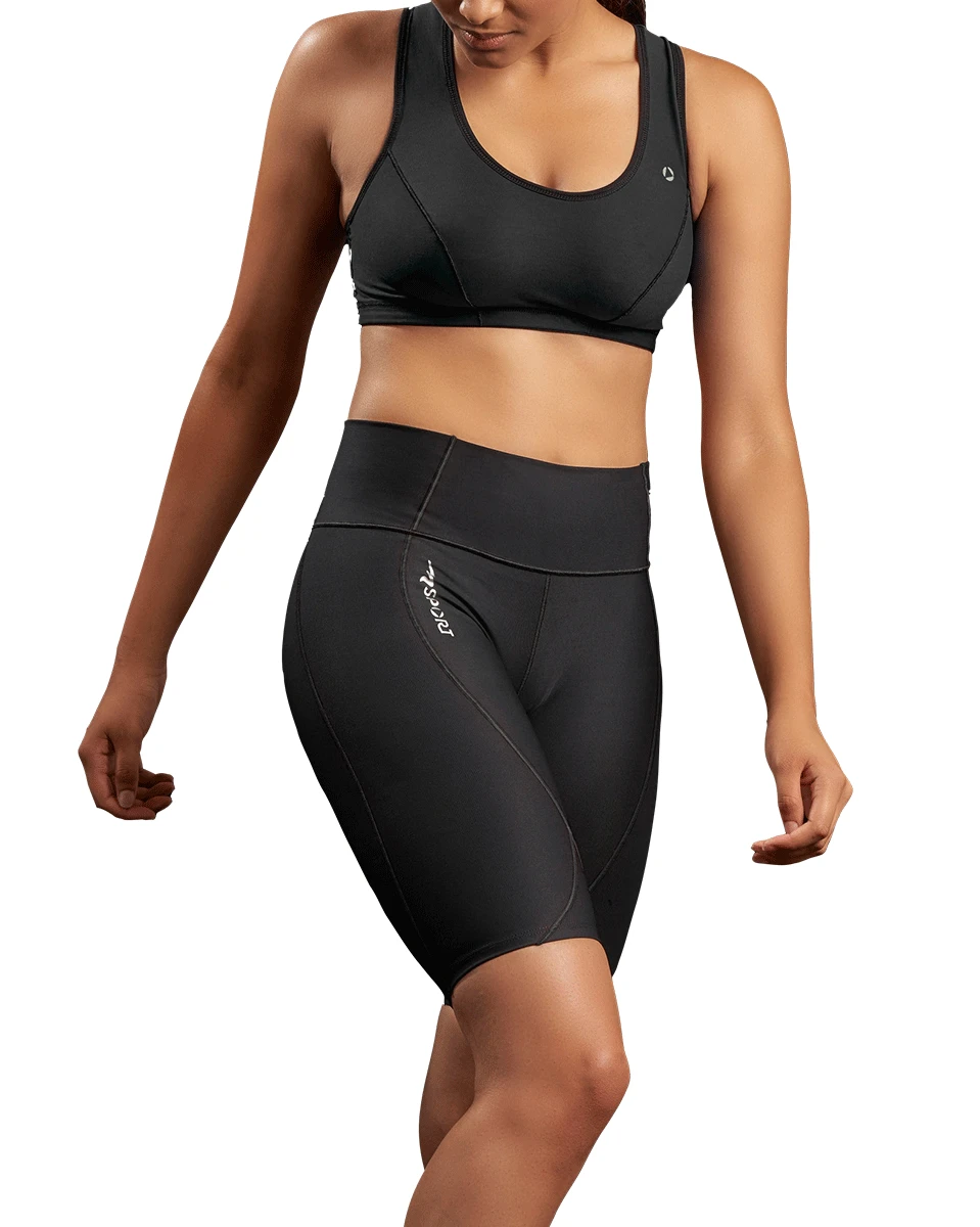 Patent Pending Design! The Women’s Core Fit bike length short features a stay-in-place waistband and is designed for comfort and support. This style offers curvy fit through the hips. Machine washable. Designed with our patented TriFlex™ 3D stretch fabric.