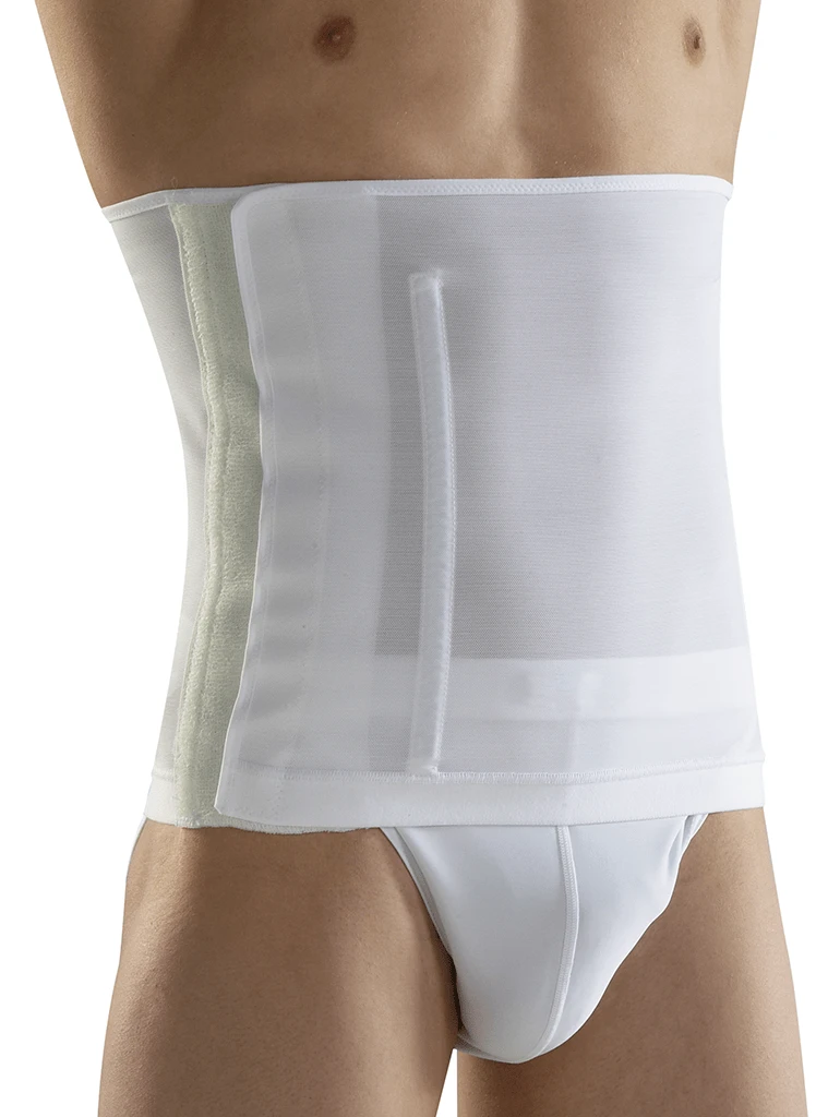 The Abdominal Binder for men is equipped with built in steel rods for added support and has adjustable Velcro for maximum compression.