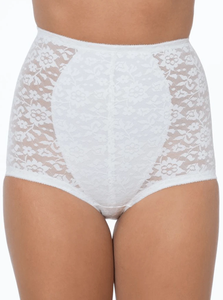 High Waist shaping brief. Firm control. Floral Fashion Lace for elegant look.