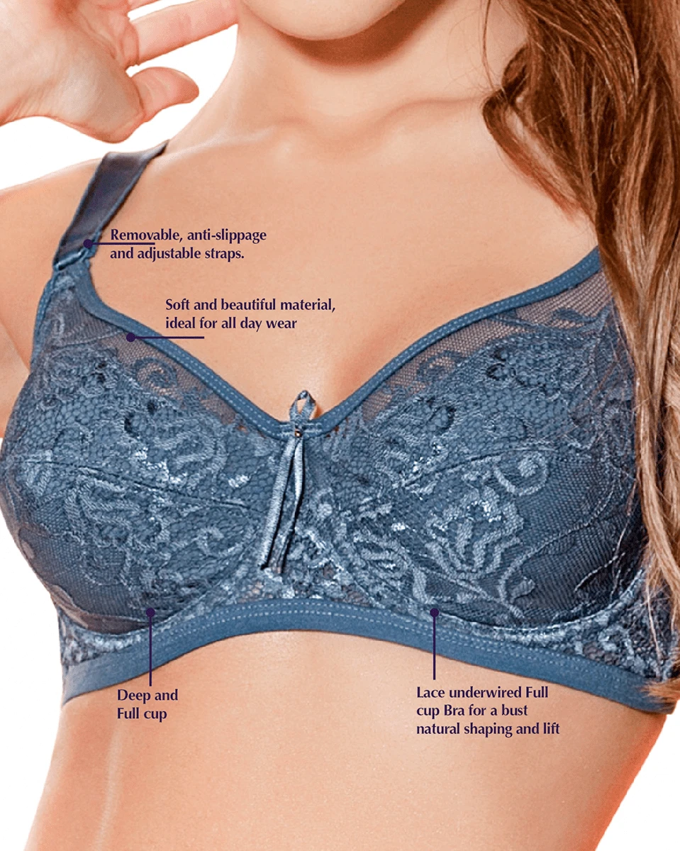 - Lace underwired Full cup Bra for a bust natural shaping and lift
