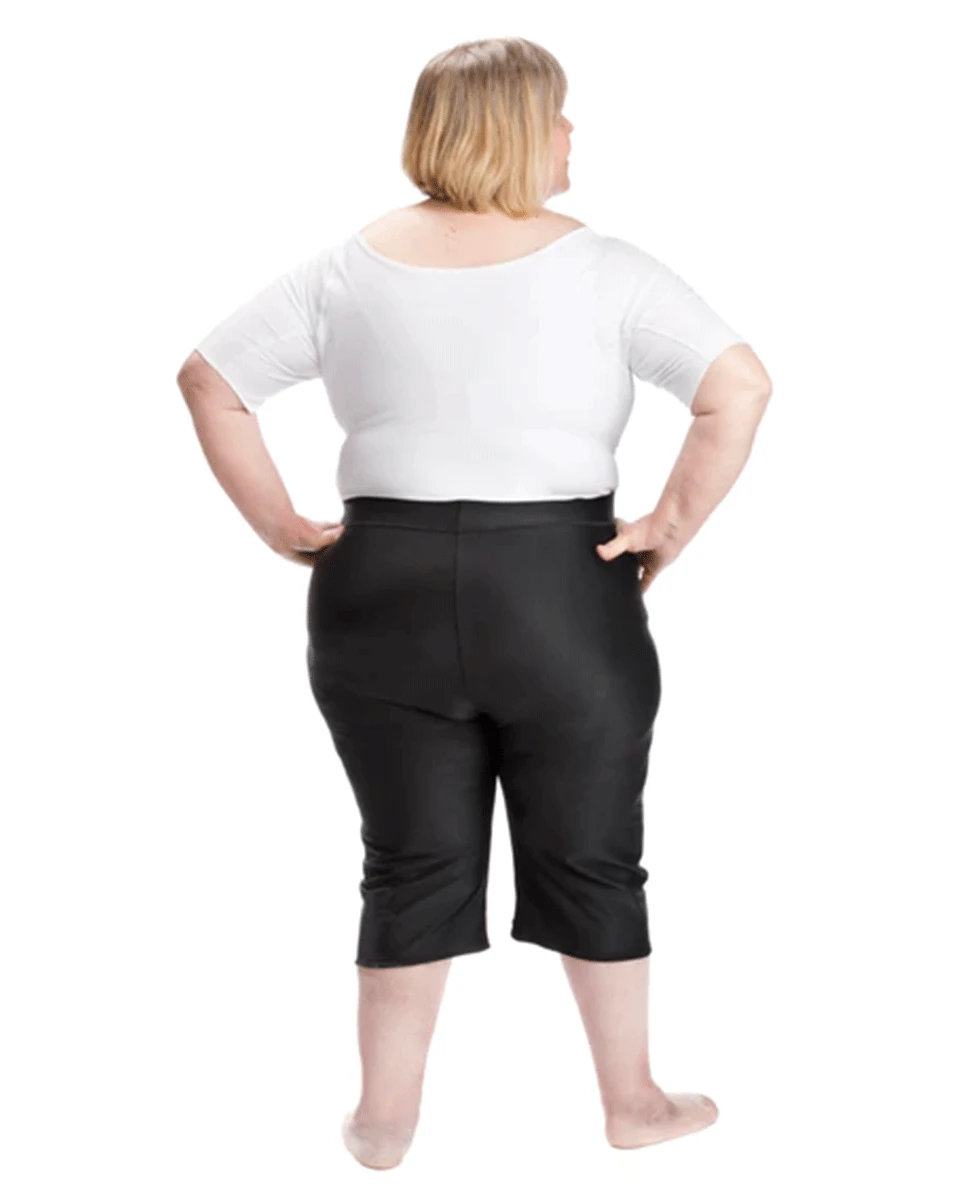 Try our new compression capris for immediate relief from swelling caused by lymphedema, edema and post-surgical recovery. Just like style 614, High Waist Shorts with added 5″ in length. Compression level of 10 to 15 mmHg mild compression for relief from swelling in the trunk and abdomen. This short provides just the right amount of support and comfort for long term wear and compliance. For best results wear with cotton underwear.